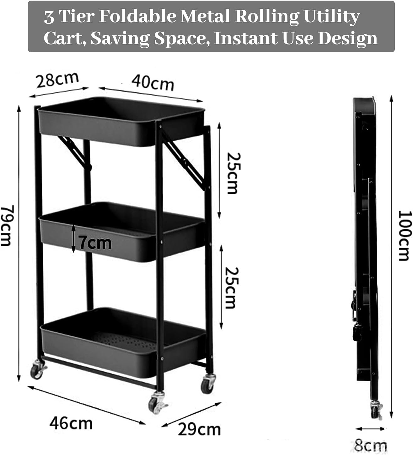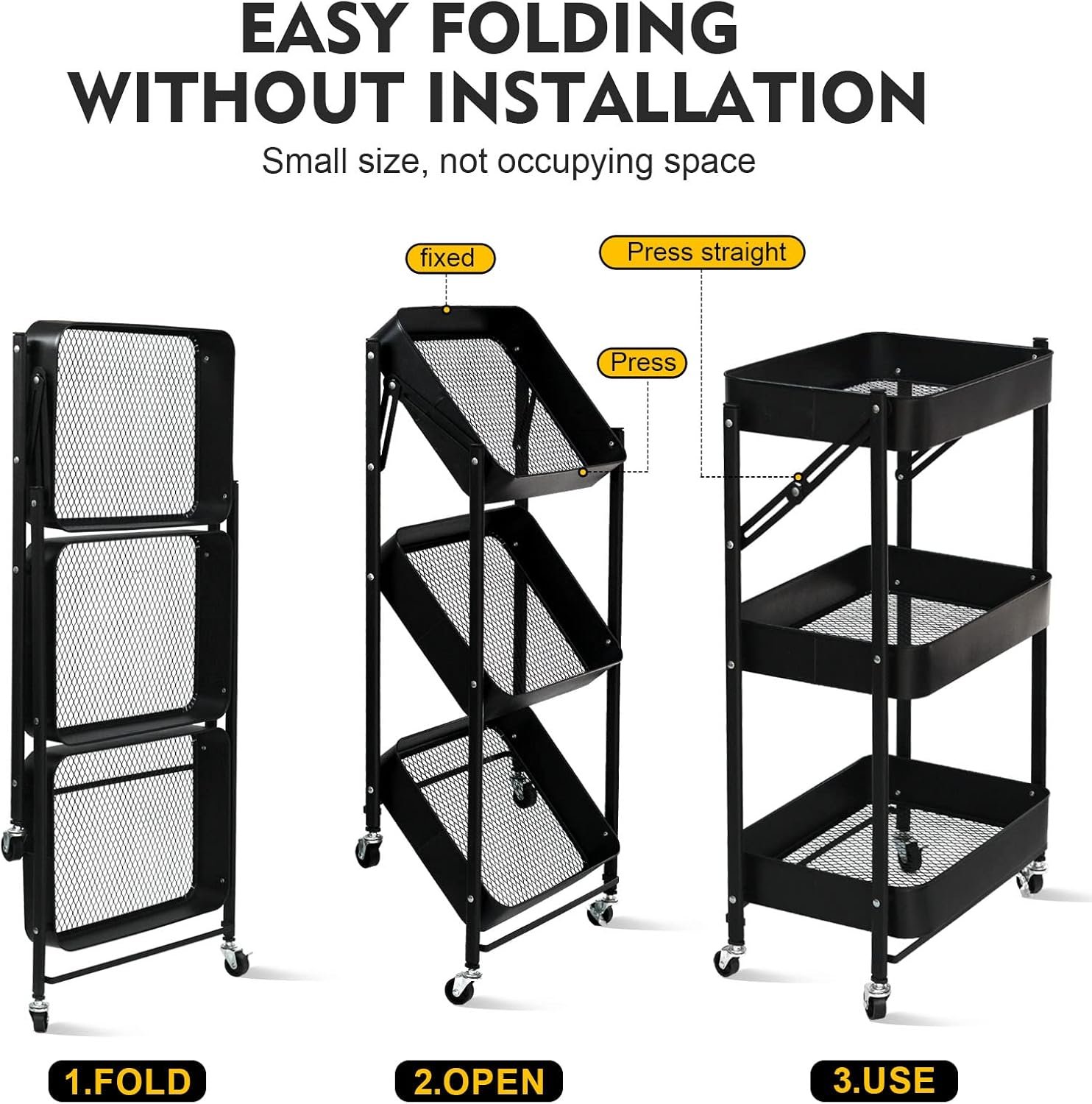 3-Tier Foldable Storage Cart with Wheels - Practical and Organized
